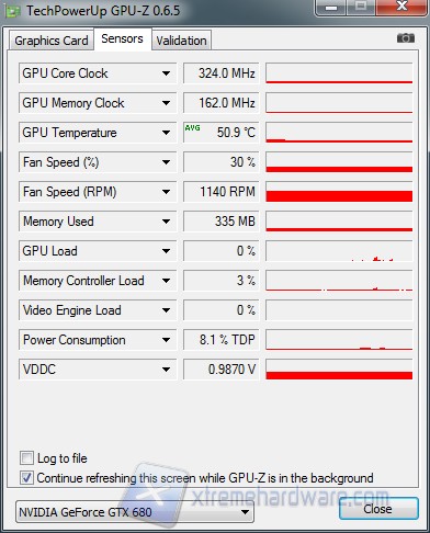 Con la N680 Lightning più che di rumorosità preferiremmo parlare di silenziosità, in IDLE le due ventole da 10 cm con tecnologia Propeller Blade sono quasi inudibili, addirittura potremmo dire che è maggiore il cosiddetto rumore elettronico che quello prodotto dal sistema di dissipazione attivo. In gaming la questione non cambia, le due ventole, nella maggior parte dei casi, risulteranno più silenziose di quelle installate nel vostro case e di certo non vi disturberanno. Impostandole al 100% ovviamente la questione cambia ma comunque il rumore prodotto non è eccessivo ed è sopportabile, giusto per farvi un esempio molte schede video con sistema di dissipazione reference producono un rumore di gran lunga superiore anche a medio regime.